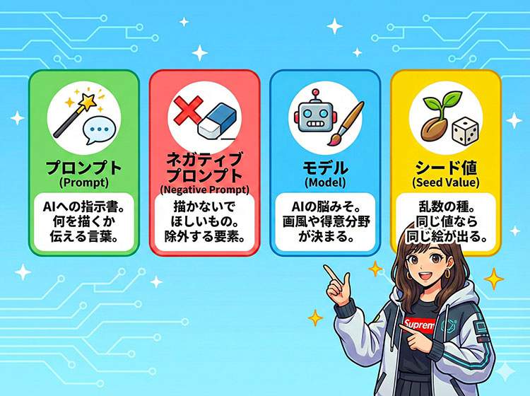 同じシード値+同じプロンプトを使うと、似たような結果が再現されやすい。