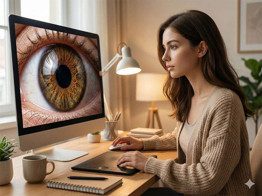 反射が不自然なときは、目そのものより「光源が曖昧」なことが原因です。光を明確にすると、反射が整います。