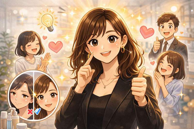 顔全体を光らせるのではなく、Tゾーンや骨格の高い位置にだけ絞ると、一気にリアルになります。