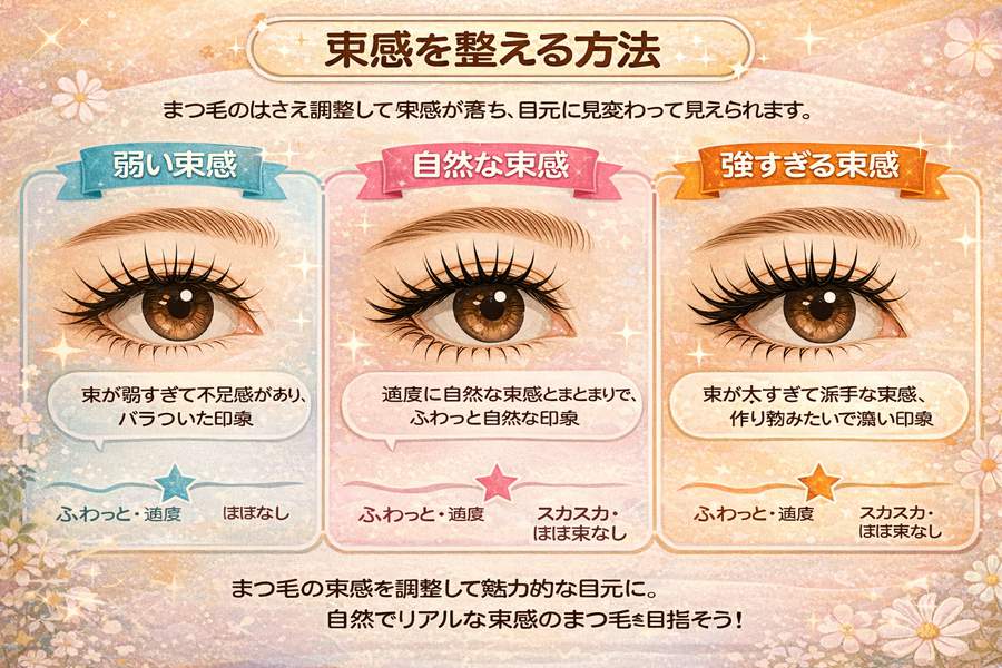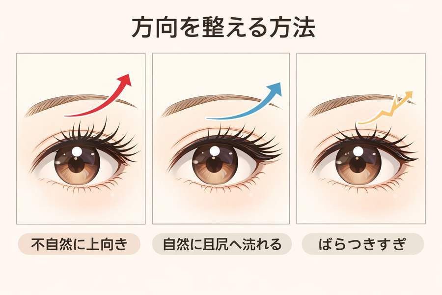 長さを盛ることでも、本数を増やすことでもなく、束感、密度、方向をきちんと整えること。ここを分けて考えるだけで、目元の完成度はかなり安定します。