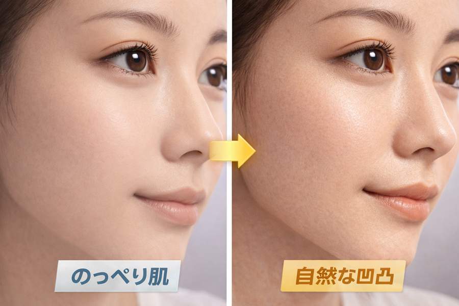 この原因は、単に毛穴が足りないからではない。肌のリアルさは、表面の粒感だけでなく、顔の起伏に沿ったやわらかい陰影、ハイライトの乗り方、部位ごとの質感差が重なってはじめて出る。