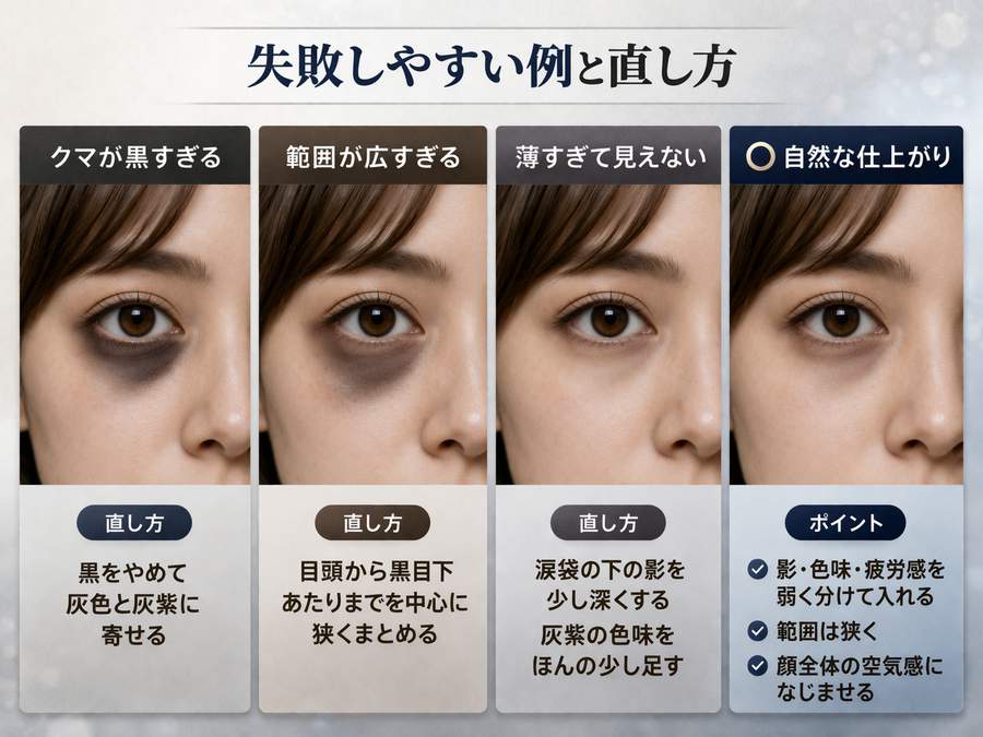 自然なクマ作りでよくある失敗は、ほぼこの3つです。