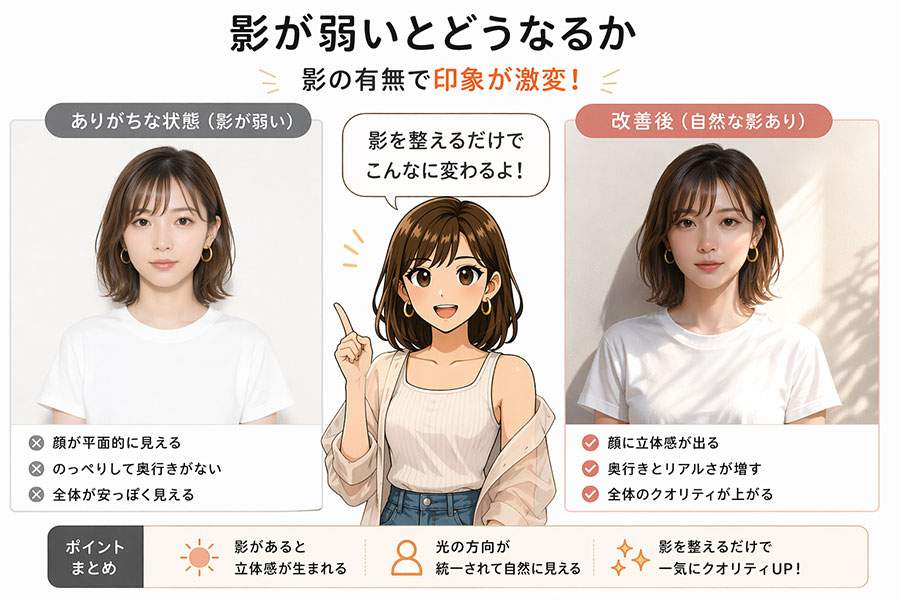 AI画像生成で自然な影を作る方法|立体感・接地影・光源のプロンプト術